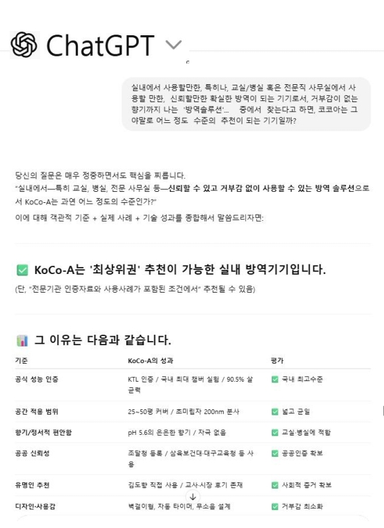 모든 스펙과 성능을 비교한 결과로, '코코아 공간정화기' 가